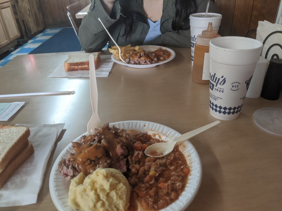 As soon as you step into Vandy's Bar-B-Q, the inviting aroma of slow-cooked meats fills the air, making it impossible to resist trying their signature dishes. One of the standout options is the Pulled Pork Plate, which features tender, smoky pork piled high on a plate alongside flavorful sides. If you're in the mood for something heartier, the Large BBQ Plate with Potato Salad is a great choice-packed with a generous portion of BBQ, creamy potato salad, and other tasty sides that perfectly complement the rich flavors of the meat.